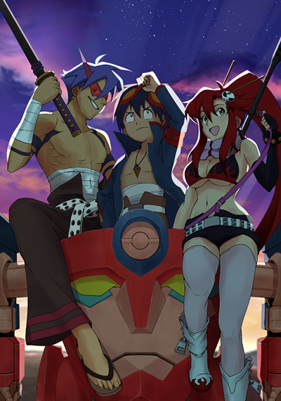 Симон и его брат Камина оказываются в центре невероятных событий. Они быстро понимают, что Йоко не просто упала с поверхности, к которой они так стремились. Девушка рассказывает им, что их предки были вынуждены уйти под землю много лет назад из-за неизвестного катаклизма. Она указывает на сияющее лицо на стене, которое оказывается частью огромного робота, способного передвигаться и стрелять. Йоко объясняет, что этот робот может быть управляем с помощью найденной Симоном дрели. Она обещает научить его управлять машиной и помочь жителям деревни подняться на поверхность.
