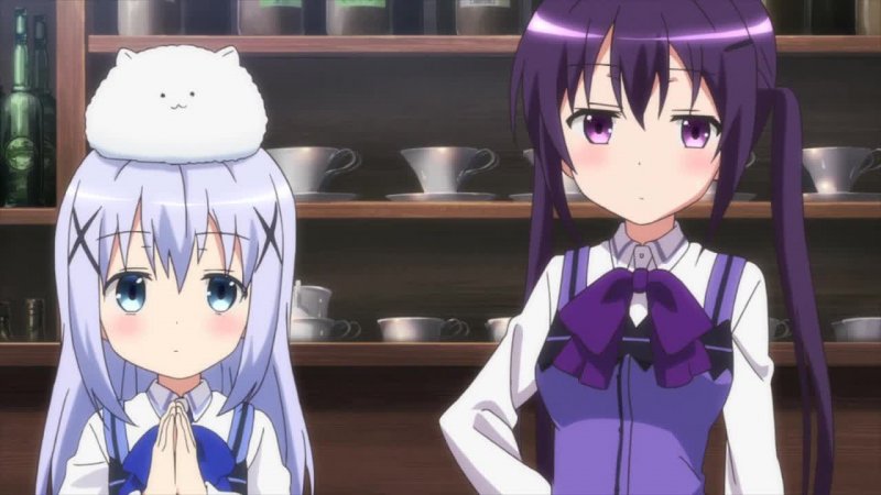 Внутри здания она встречает скромную и тихую девушку по имени Чино. На голове Чино уютно устроился пушистый белоснежный кролик, который сразу привлекает внимание Кокоа. В детстве Кокоа мечтала о таком питомце, но сейчас у нее на первом месте — работа и учеба. Она спешит на собеседование в кафе, надеясь получить там место.